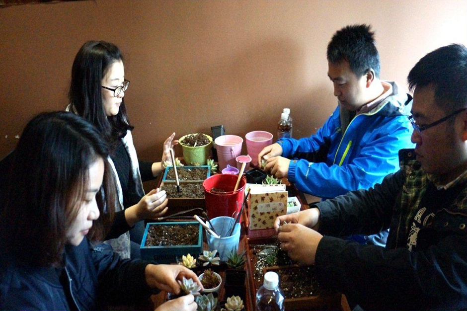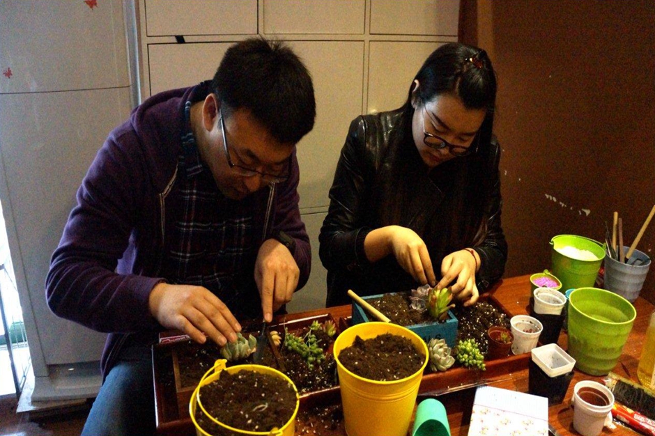 多肉植物果然是女生們的最愛(ài)!你瞧,活動(dòng)中,上汽財(cái)務(wù)公司外勤員工家屬在自家男同胞的配合下,充分展現(xiàn)出了自己的“干練”,紛紛卷起袖子,從琳瑯滿目的各種多肉小盆栽里挑選出自己喜愛(ài)的品種。大家在老師的指導(dǎo)下,用鏟子將泥土和營(yíng)養(yǎng)石倒入長(zhǎng)方形的木質(zhì)花盒,再根據(jù)自己的創(chuàng)意構(gòu)思,把“小肉肉”挨個(gè)植入土中。為了使大家的作品顏值更高、更加與眾不同,活動(dòng)現(xiàn)場(chǎng)還為大家準(zhǔn)備了各式各樣的裝飾小擺件,包括各種小動(dòng)物、迷你彩虹、籬笆、小船等等,以及五顏六色的彩石彩砂。就這樣,一幅幅活靈活現(xiàn)的“多肉系視覺(jué)藝術(shù)作品”在公司外勤員工家屬的心靈手巧下誕生咯!隨之而來(lái)的,當(dāng)然就是各種自拍、各種曬、各種朋友圈啦……
