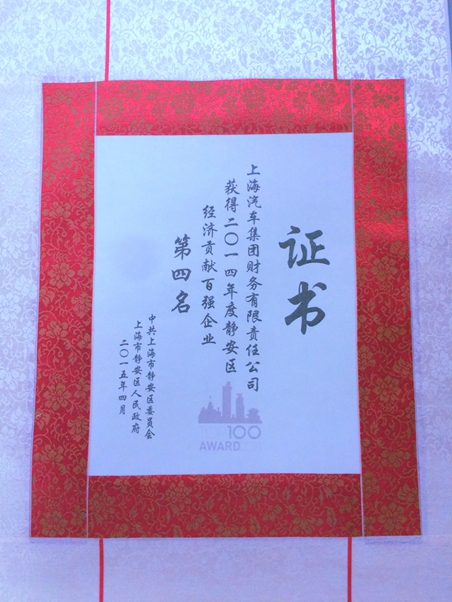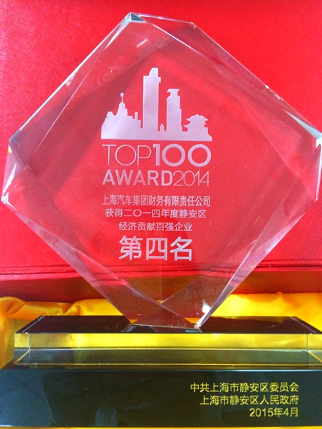 贊 上汽財(cái)務(wù)公司榮獲靜安區(qū)2014年度經(jīng)濟(jì)貢獻(xiàn)百?gòu)?qiáng)企業(yè)第四名(圖)