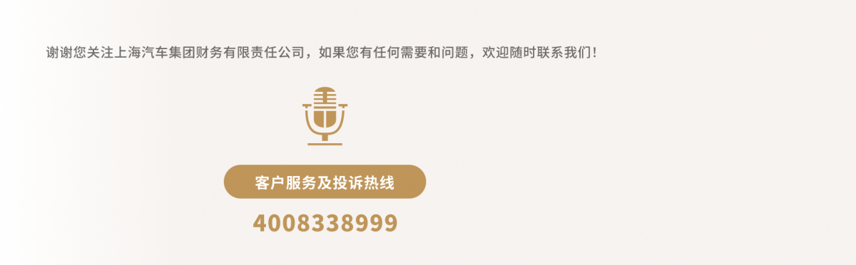 謝謝您關(guān)注上海汽車集團(tuán)財(cái)務(wù)有限責(zé)任公司,如果您有任何需要和問題,歡迎隨時(shí)聯(lián)系我們!